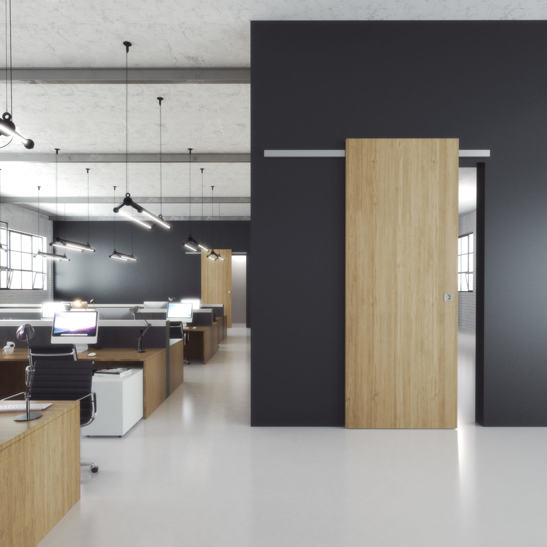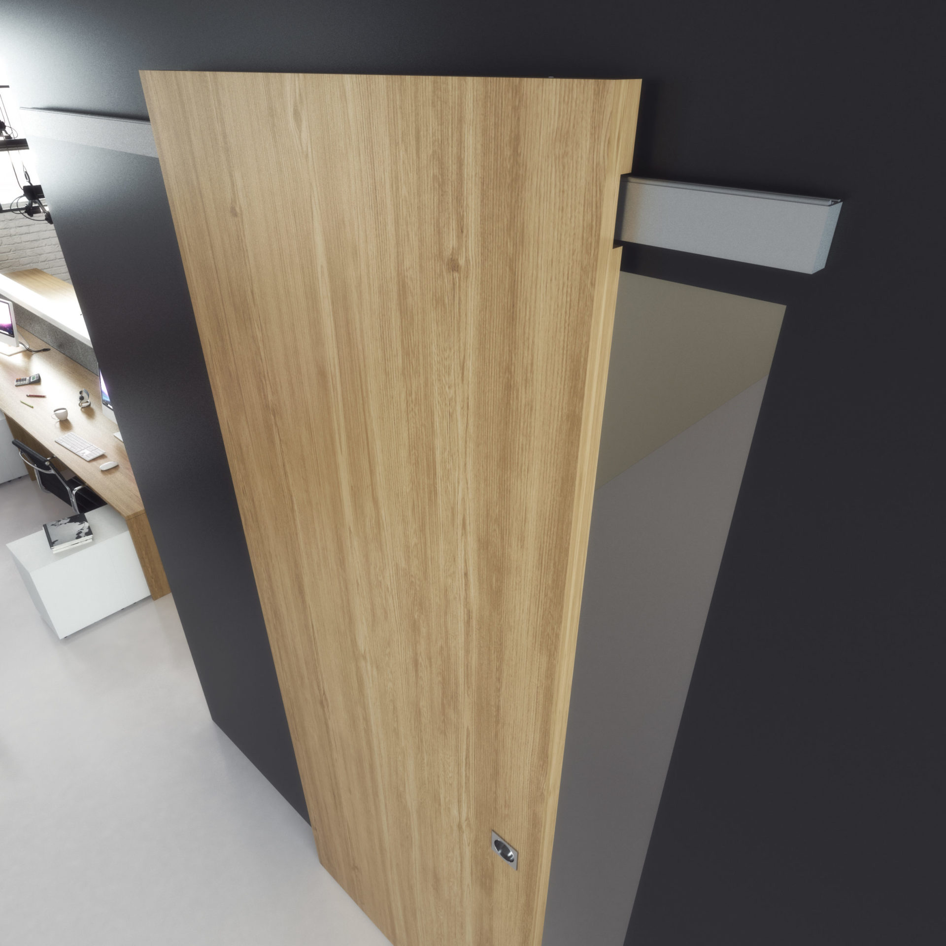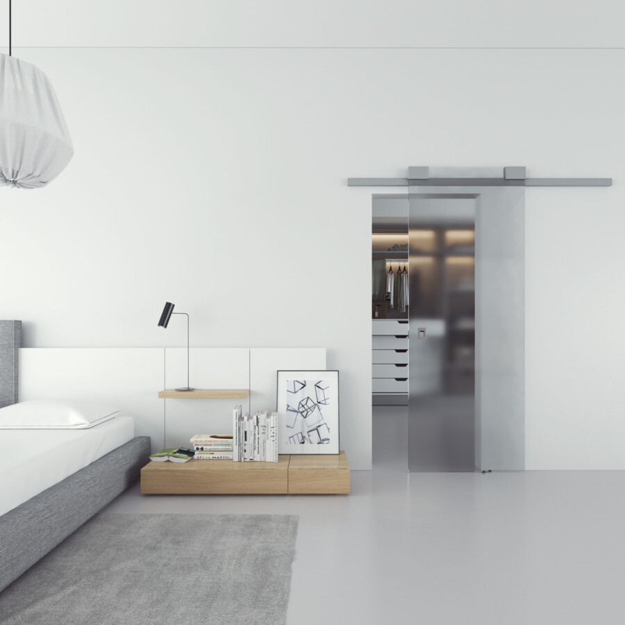 Настенная раздвижная барная система с минималистичным и эстетичным дизайном. меньшее расстояние между дверным полотном и стеной по сравнению с другими системами. два дополнительных устройства замедления — для открытия и закрытия ворот.