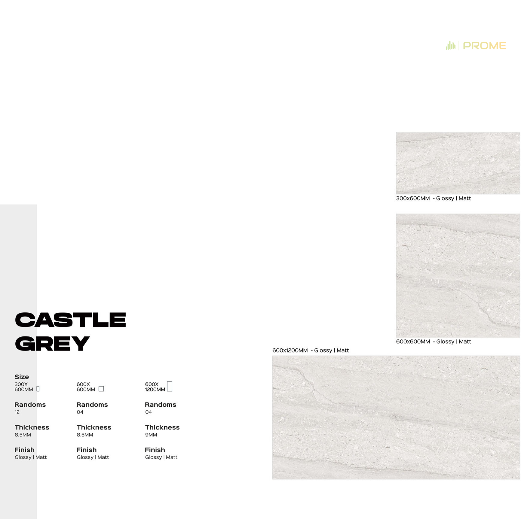 Castle Grey läikiv või matt keraamiline plaat suurused