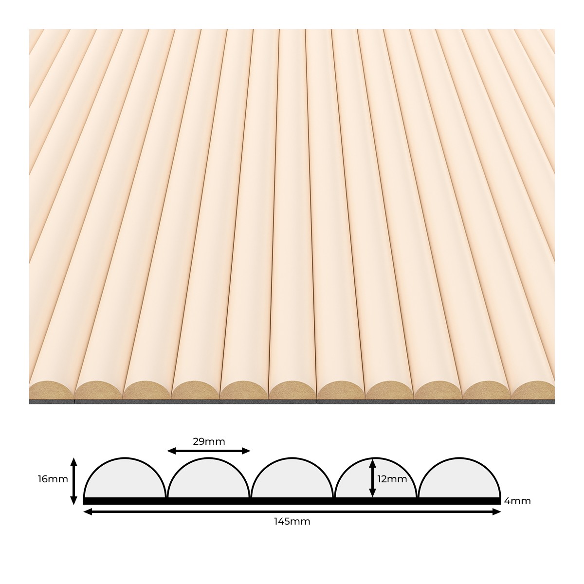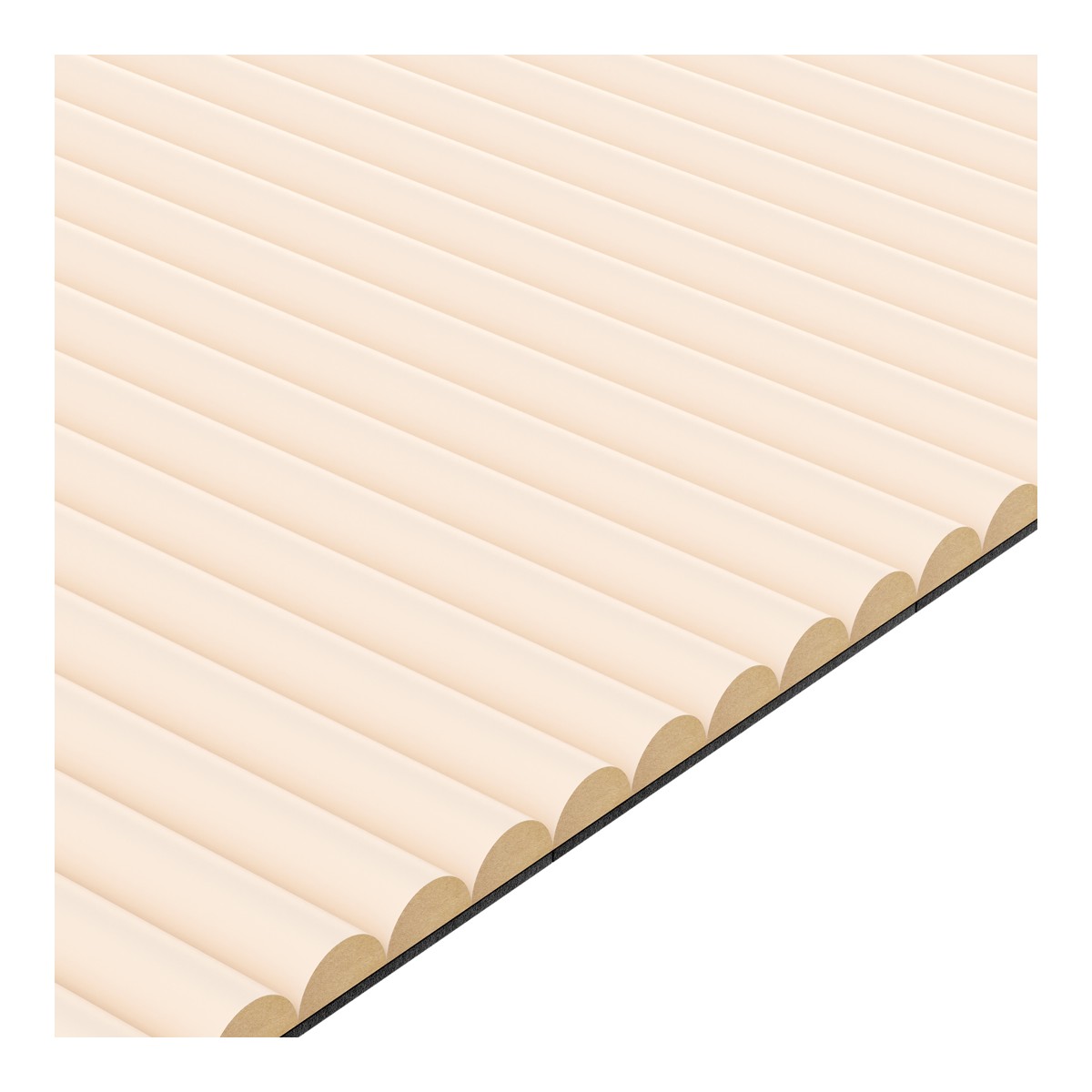 Beeži varjundiga flöötpaneel on ideaalne viis soojuse ja elegantsi toomiseks igasse interjööri. Need kerged seinapaneelid, mis ühendavad õrna elegantsi beeži viimistlusega, rikastavad siseruumi ja parandavad selle akustikat. Lamineeritud MDF, asetatud 4 mm paksusele mustale vildile .