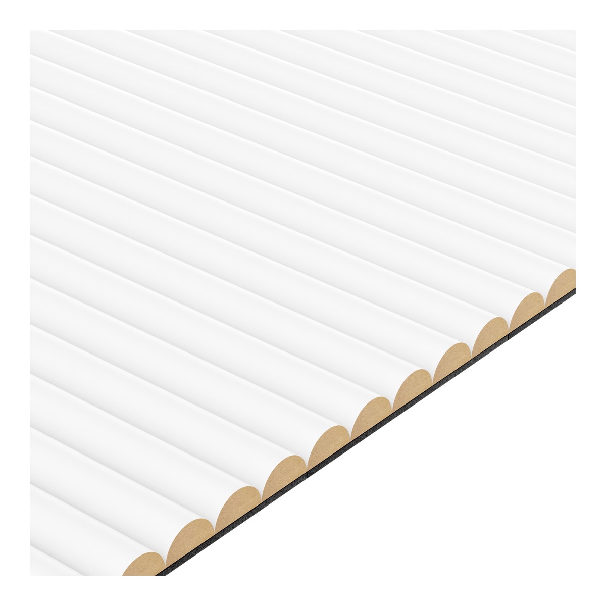Valge varjundiga vildiga MDF-i flöötpaneel on ideaalne valik, kui soovite mitte ainult hoolitseda akustika eest ega viimistleda oma interjööri seinu. Puhas valge värv peegeldab valgust, suurendades optiliselt ruumi flöötpaneelid koosnevad viiest ovaalsest liistust. lamineeritud MDF, asetatud mustale vildile paksusega 4 mm. Võluv muster loob põneva efekti, lisades modernse šiki välimuse Valge toon toob interjööri elegantsi ja värskust, sulandudes hästi erinevate stiilidega.