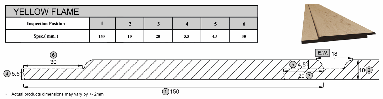 | Serva profiil | Tekstuur | Sügavus(mm) | Laius (mm) | Pikkus (mm) | Kaal (kg/tk) | Värvivorming |