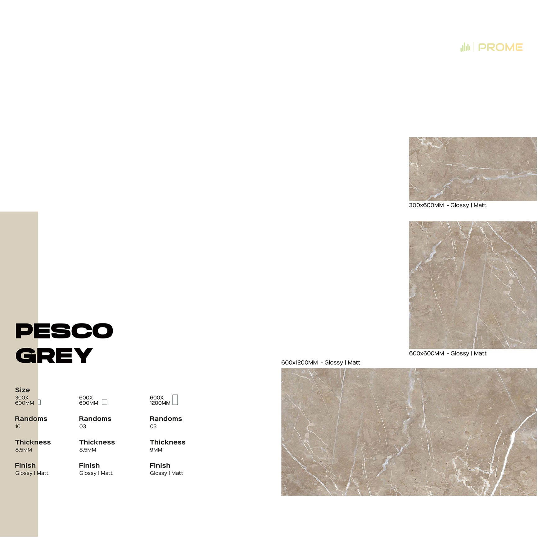 Pesco Grey läikiv või matt keraamiline plaat suurused