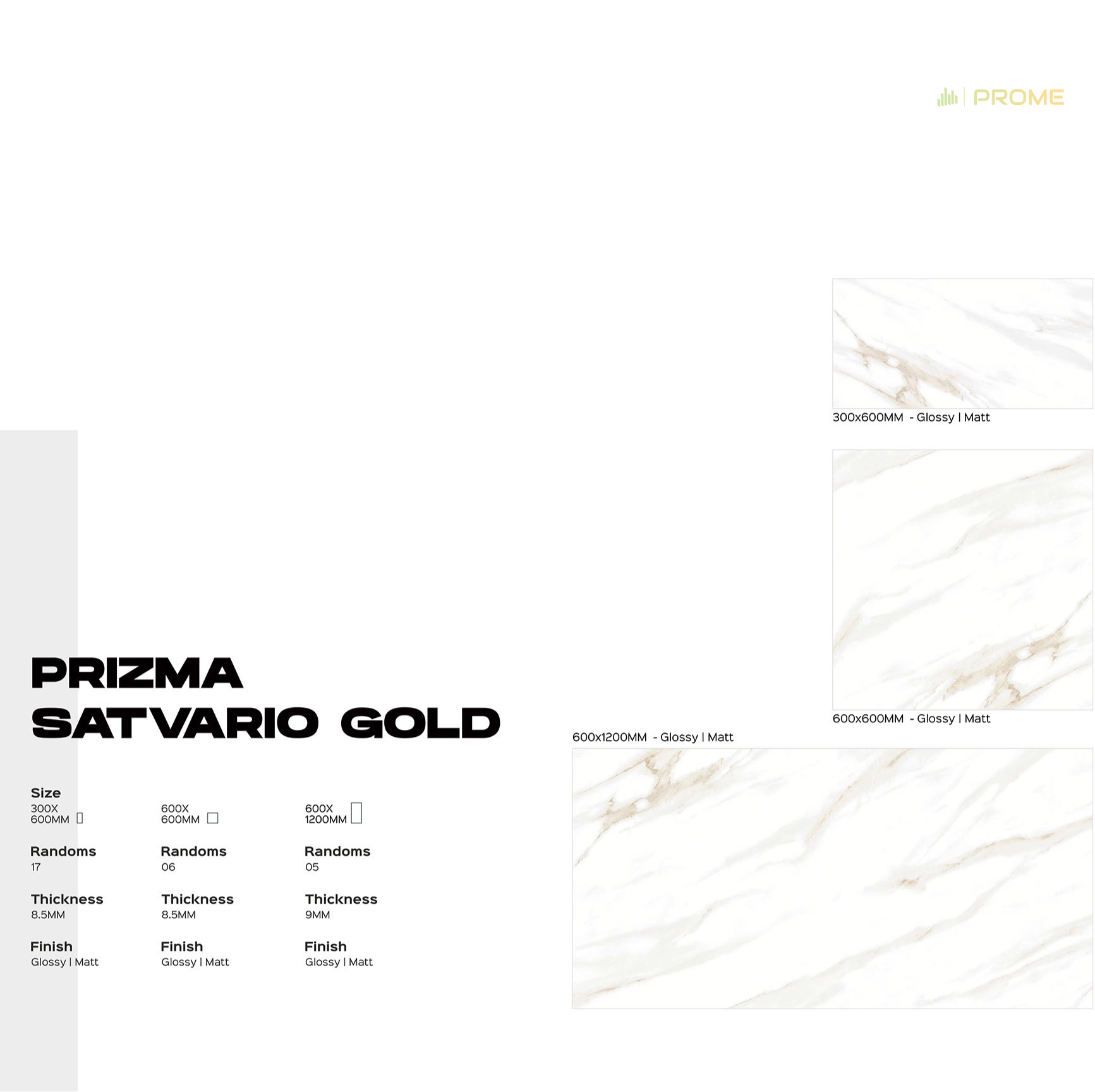 Prizma Satvario Gold või matt keraamiline plaat suurused