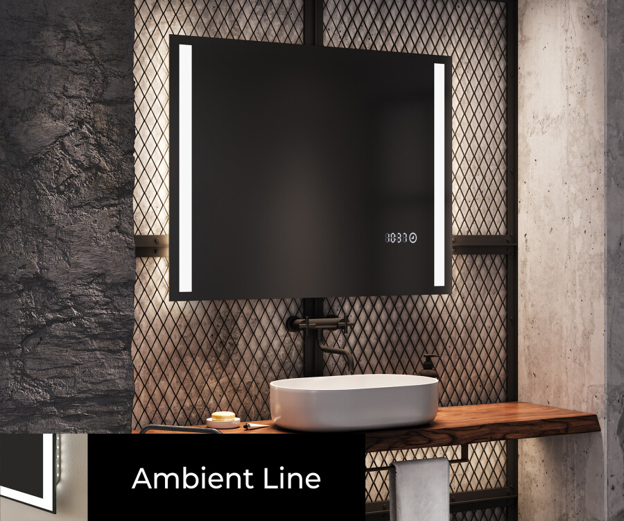 Ambient Line LED vannitoapeegel on moodsa disaini ja elegantsi kombinatsioon. Dekoratiivne tagavalgustus sobib nii suurtele kui väiksematele ruumidele. Ambient Line toodetes on valguskiir peen ja hajutatud, langeb seinale, kuhu peegel on riputatud.