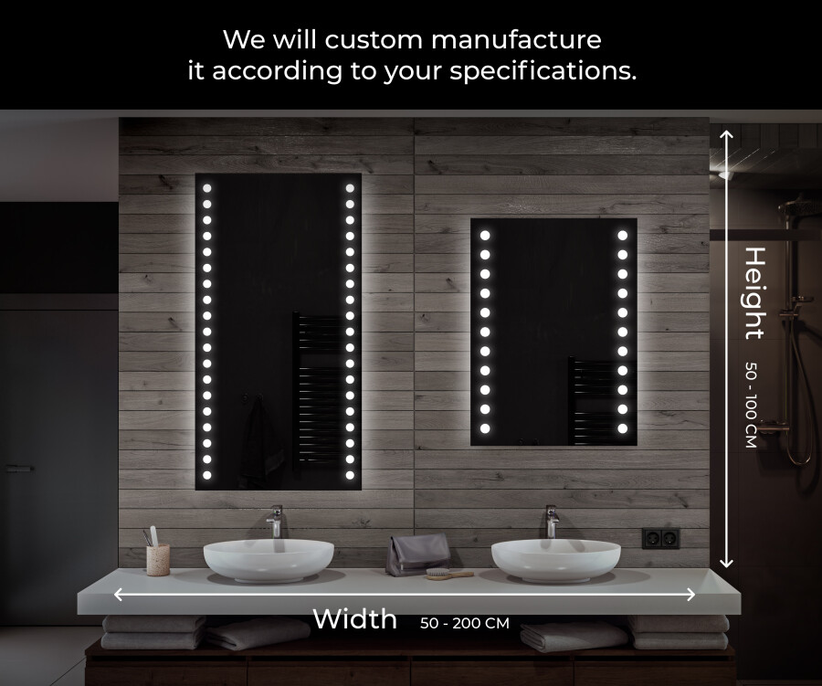 Me valmistame kohandatud vannitoapeegleid teie eritellimusel. Kohandage peegli suurust, raami värvi ja LED-valgustuse tooni (neutraalne või külm) vastavalt oma ruumi stiilile.