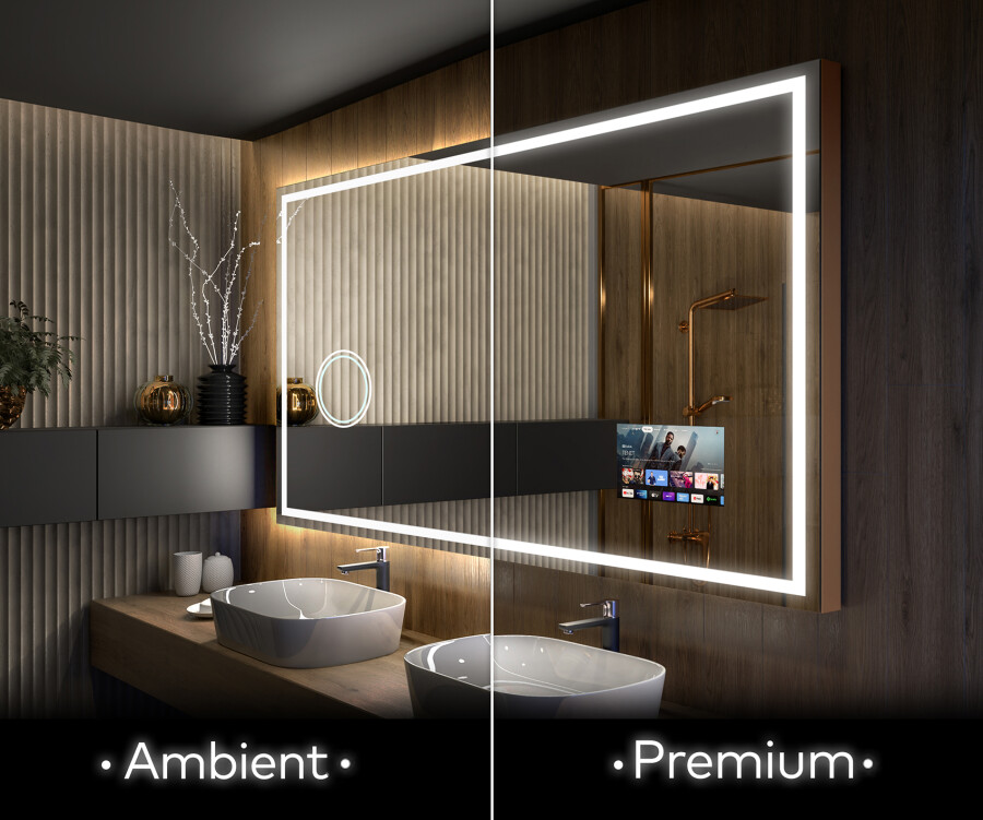 AmbientLine LED-vannitoapeegel ühendab endas modernse disaini ja elegantsi. Dekoratiivne taustvalgustus sobib nii suurtesse kui väikestesse ruumidesse. AmbientLine toodete valgusvihk on pehme ja hajutatud, langeb seinale, millele peegel on paigaldatud.