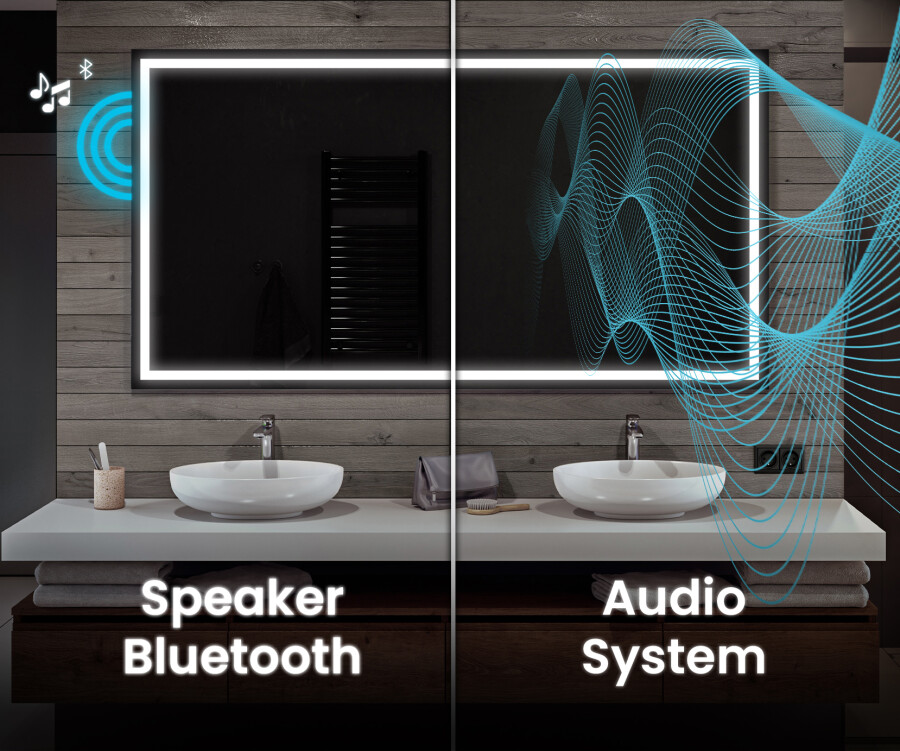 Kujutle, kuidas lõõgastud vannis oma lemmikmuusika saatel! Kaks nähtamatut kõlarit, kuni 10 m ulatuses Bluetooth-ühendus. Kõrge helikvaliteet, tugev bass. Kuula muusikat, raadiot või podcaste otse nutitelefonist. Sisseehitatud audio süsteem pakub selget heli kogu vannituppa.
