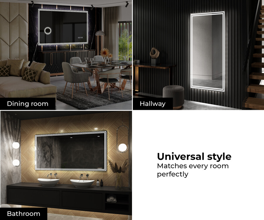 Dekoratiivne pehme valgustus suurtele ja väikestele ruumidele. Valgus on õrn ja hajutatud, langeb seinale, millele peegel on riputatud.