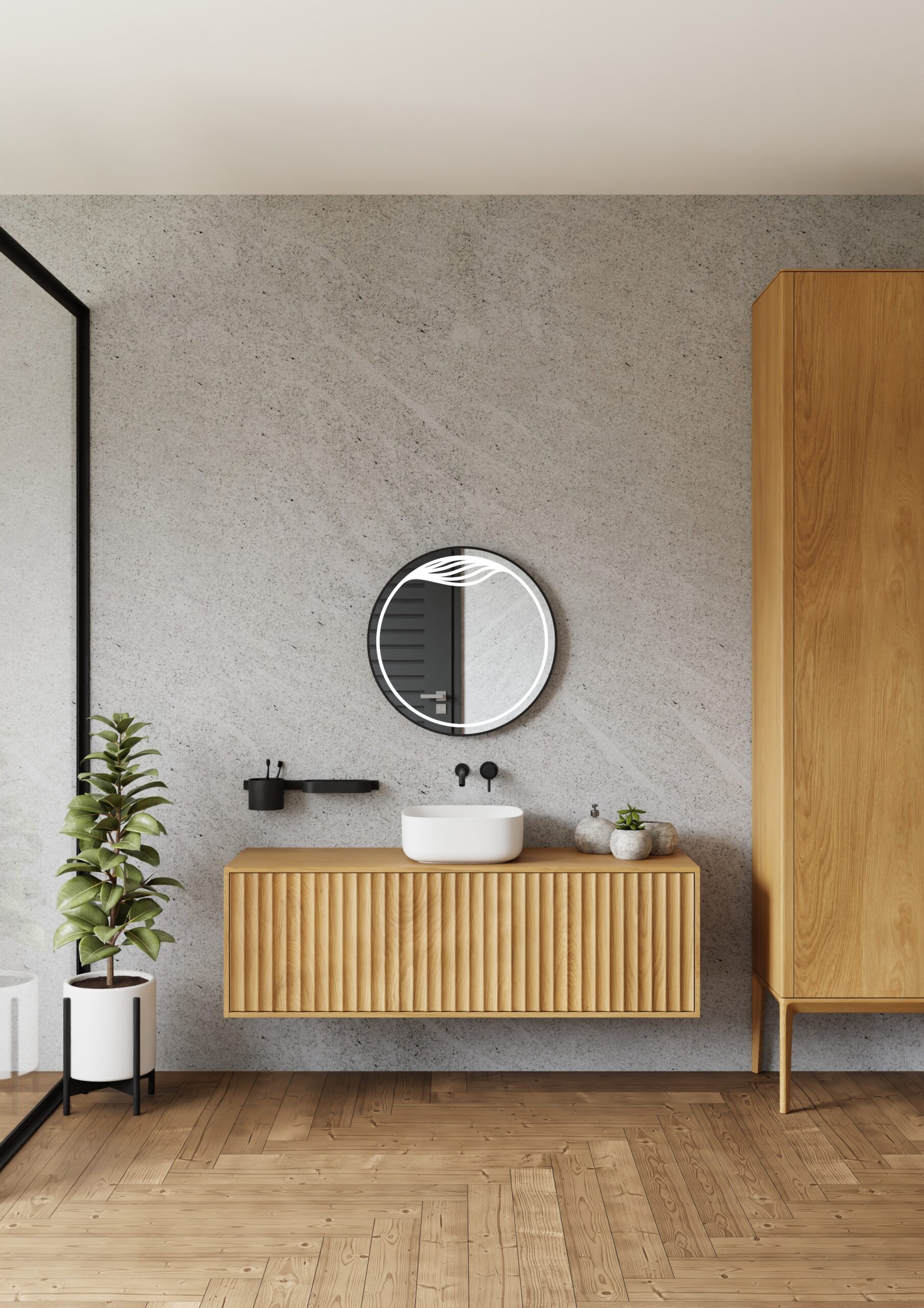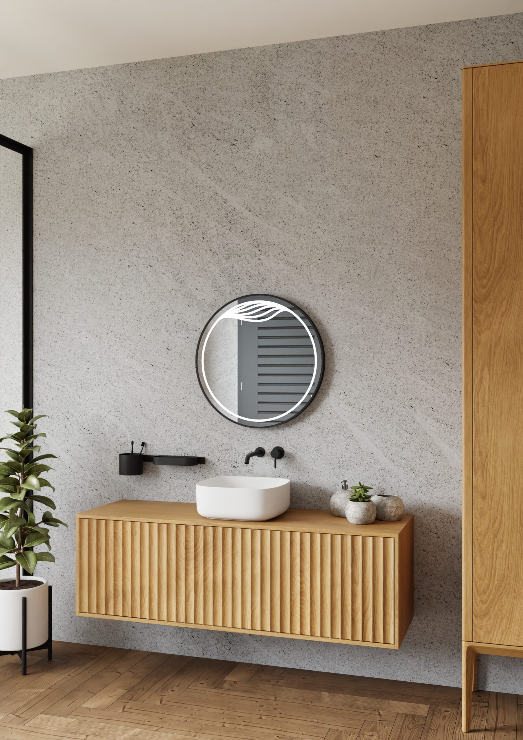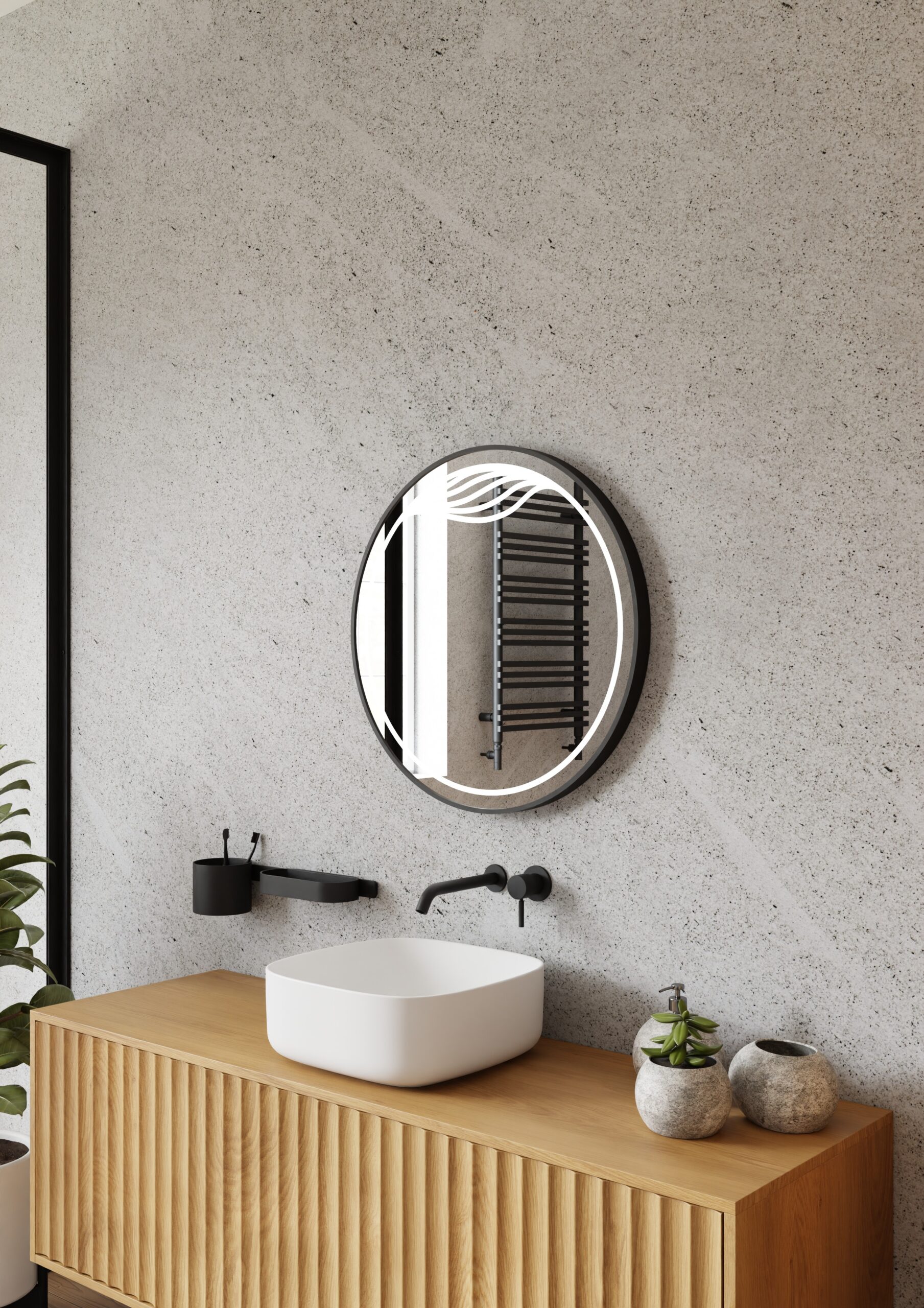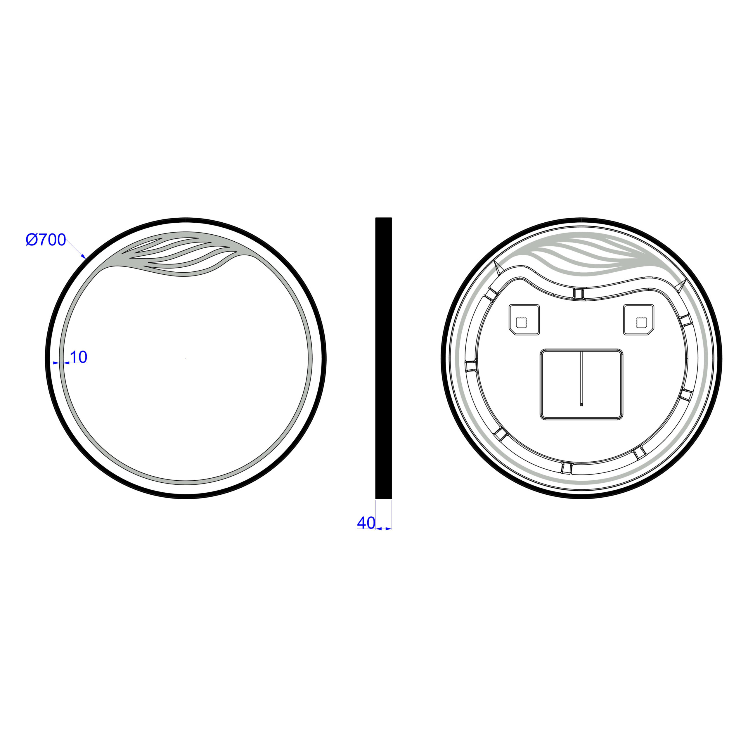 Eksklusiivne LED-valgustusega dekoratiivpeegel Maya on valmistatud vastupidavast harjatud alumiiniumist musta metallraamiga. Sobib ideaalselt vannituppa või esikusse, tuues ruumi elegantsi ja kaasaegsust. 70×70 cm ümmargune kuju ning pehme neutraalne valgus loovad mõnusa atmosfääri igas interjööris. Raami sügavus 4 cm annab peeglile kolmemõõtmelise efekti. LED-valgustus on ohutu, energiasäästlik ja tagab pika kasutusea.